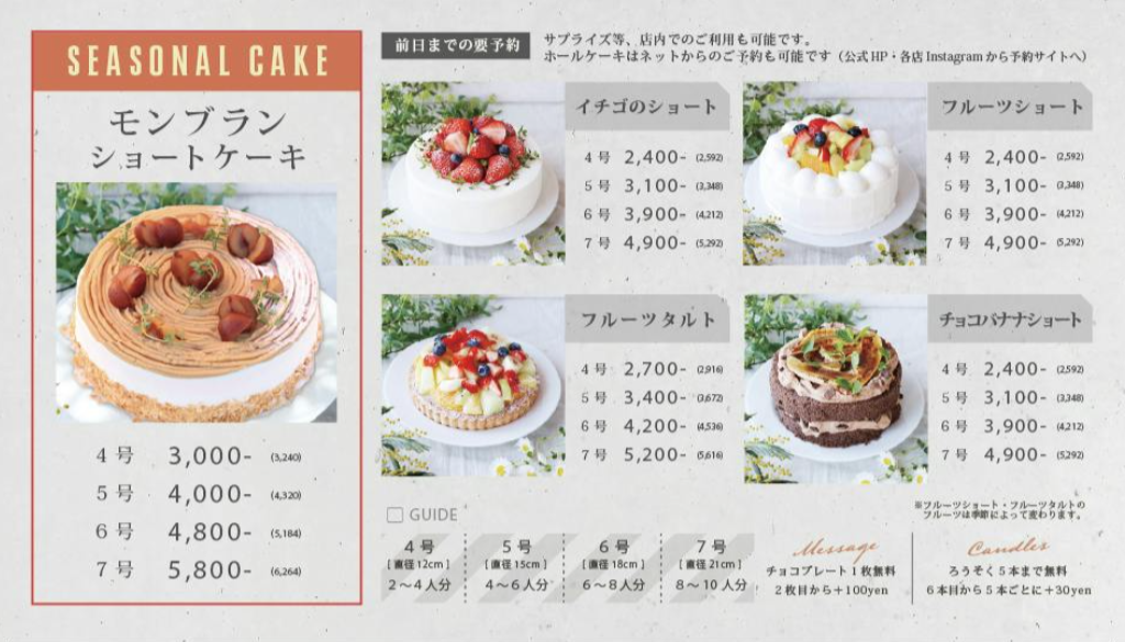 [各務原店]ホールケーキのご予約はこちらから [江南店]ホールケーキのご予約はこちらから