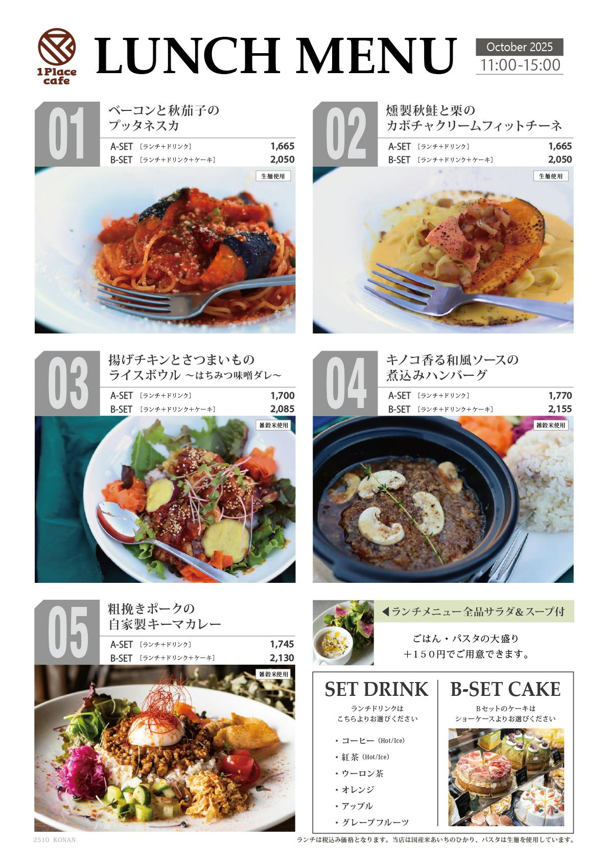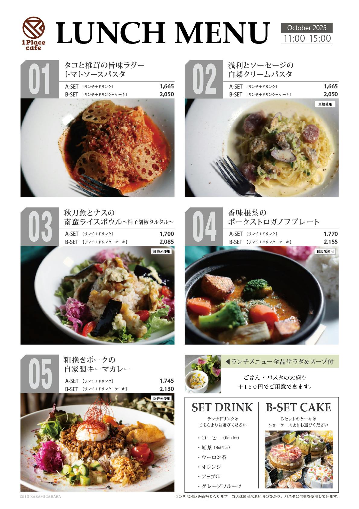 素材選びから調理まで、すべてにこだわりを持ってご提供しています。 新鮮な食材を使ったメインディッシュと、彩り豊かなサラダや自家製スープを組み合わせ、 心も体も満たされるランチプレートをお楽しみいただけます。